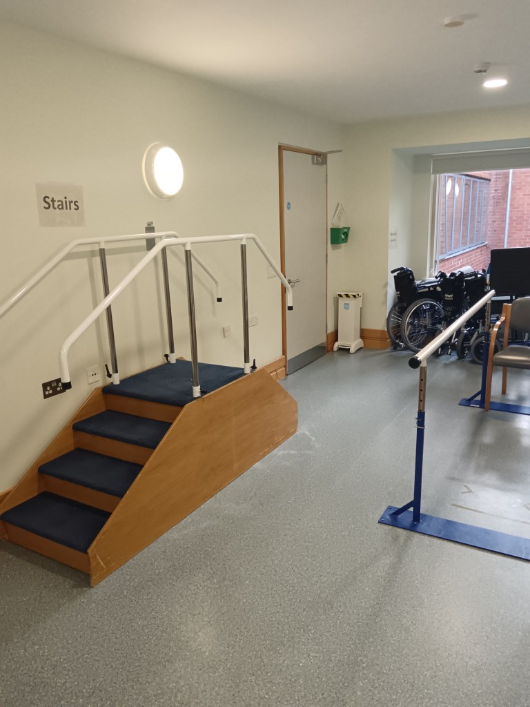 Once tthe wound as healed, patient will be taught how to mobilise with temporary prosthetic leg with the parallel bars and gradually progress from mobilising holding two bars to one and to walking unaided in the physio gym. Strengthening exercises to the lower limb will also be taught.